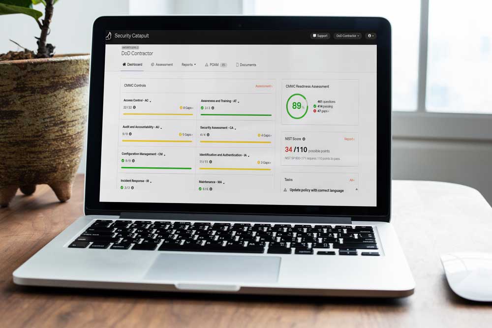 Monarch leverages our CMMC self-assessment tool, Security Catapult®, to assess your organization’s understanding with the 110 practices detailed in NIST Special Publication 800-171, and identify any gaps in your current CMMC program. These same 110 practices entirely comprise CMMC Level 2 requirements for Organizations Seeking Certification (OSC) that manage Controlled Unclassified Information (CUI). By using Security Catapult, we support alignment, documentation, and assessment readiness.